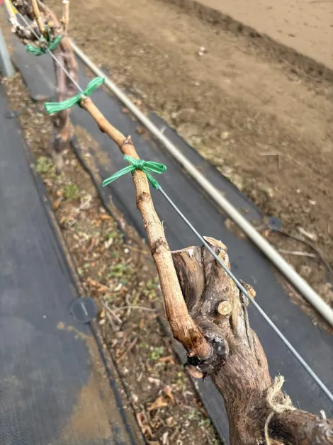 誘引のために枝を曲げて行くと、付け根の方に水が上がって来ていた。
