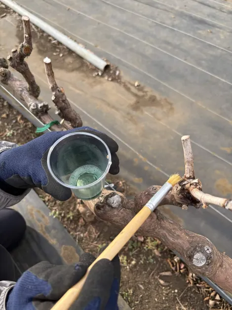 芽はまだ小さく固い。先端の芽を除きメリットを塗る。